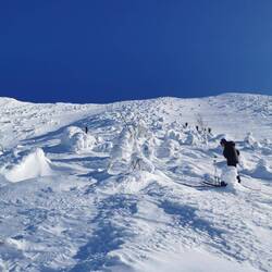 Die letzten 250 Höhenmeter waren schon sehr anstrengend, aber mit Messern an den Bindungen ging das schon gut.
