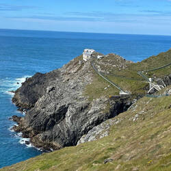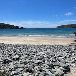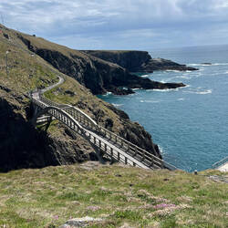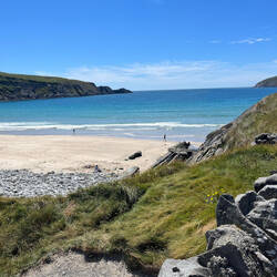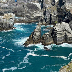 Mizen Head is the most southwestern part of Ireland. Looks out over the Atlantic Ocean. It’s another must see! The bridge to the lighthouse is very substantial and nothing like the rope bridge in the beginning of our trip but the hike to the lighthouse and different vantage points were steep. We had the picture perfect day as some walkways are closed off, depending on weather conditions - so we did it all. Pictures are from multiple views, we will try and label them. On the drive back to town, we were determined to find a beach and wade in the Atlantic. Barley Cove had a few people on it so we parked and assessed the situation. To reach the beach we had to climb down a gentle rock slope. It was more challenging than we anticipated, with a few stops to breath, say a prayer and move on. The trip was worth it. Ocean water temperature was similar to our June temperature. It felt good to walk the beach.