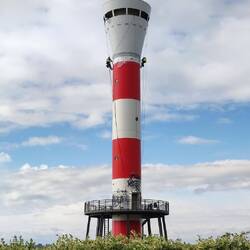 Mit den Rädern vom Campingplatz Hvide Sande durch die Dünen (Radroute 1) am Leuchtturm Lyngvig (Ringkøbing) vorbei.