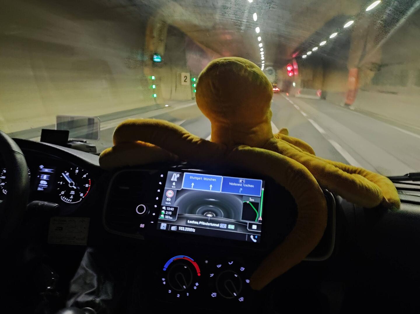 Nach der Schweiz im Schnee und Regen gegen 11 Uhr wieder am Bodensee entlang nach Straßburg, Tankstopp in Österreich (2,24 😏 wieder fast 140,- bezahlt)