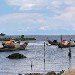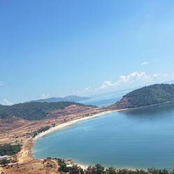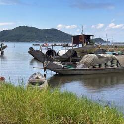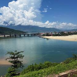 Pulled over a few times on the way down for some pretty views and then we left the highway for the fishing village of Phu Loc. Lots of boats in the water but the village was deserted. Mind you it was pretty hot by now and we were ready to get off the bike so we hightailed it to Hue.