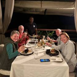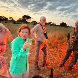 Back at the camp early today to pack up and get organised for the flight home tomorrow. The staff had planned a lovely private dinner for us beside the fire. It was a perfect last night in the bush for us, cocktails, lovely sunset, great food, good company and a send off song and dance from the staff.Read more