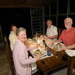 After a few drinks we headed down for dinner, there seemed to be a bit of confusion about our table and after a few minutes Godfrey who is looking after us comes in and says oh no table for you here and leads us to a private table with our own fire and butler and chef. Curtesy of Emma we’re sure. We have been so spoil on this holiday.Read more