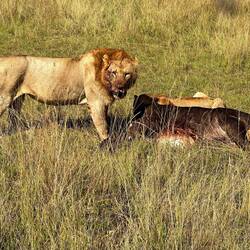 Today we are heading off to look for the Wildebeest migration. But just as we got down the road from our lodge there were two cheetahs on the road so we had to stop for them and then a few minutes more and a group of Lions. So many animal on the way, eventually David put his foot down, I think he thought we would never get there.