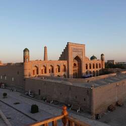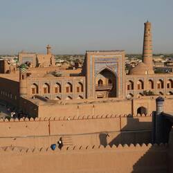Wir starten die Chiwa Besichtigung mit einem großen Frühstück auf einer Dachterrasse.