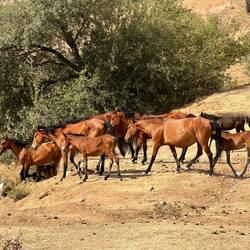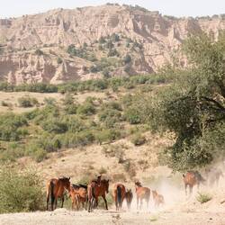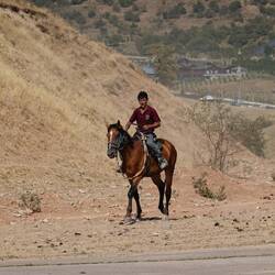 flach, gerade Straße, Pferde und Kamele, bekommen eine duftende Melone geschrnkt, hören unterwegs Hörbuch. Morgens und abends wird’s schon frisch, wir kramen den Fleece wieder raus!
