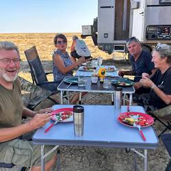 Lehm, Sand, vertrocknete Büsche, kaum Erhebungen, der Blick geht weit bis zum Horizont. Wir holpern erst auf Schotter, dann auf trockenem Lehm, viel Wellblech, das Fahren ist anstrengend.Read more