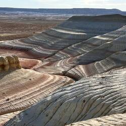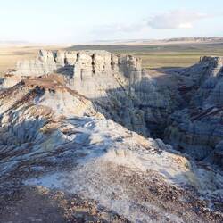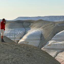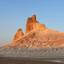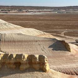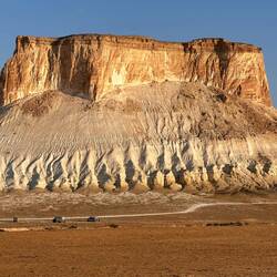 ist eine Landschaft im Südwesten von Kasachstan. Bis vor 12000 Jahren lag der Meeresspiegel erheblich höher als heute und wir bewegen uns teilweise auf dem ehemaligen Meeresboden.