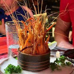 Erst die Vorsuppe - zum Essen gab es Fisch mit Tomatensoße und Spargel und für Frank Trüffelnudeln