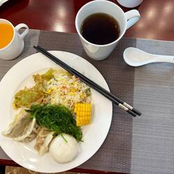 Unsere erste Nacht im Hotel war gut * Frühstück gab es ab 7 Uhr heute aber nicht als Buffett… wir bestellen einen Mix aus chinesischem und europäischem Frühstück, wobei das europäische Speck,もっと詳しく