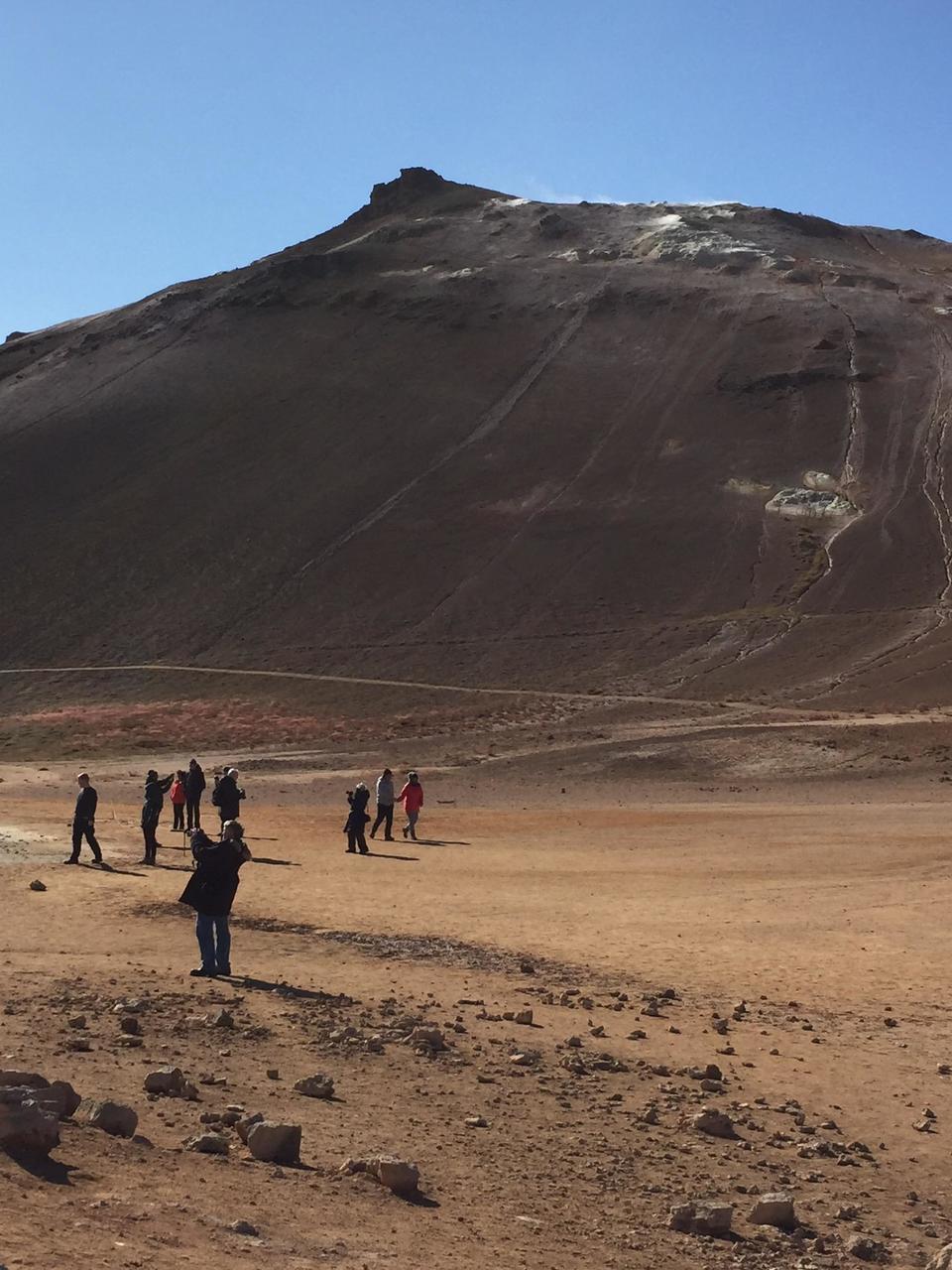 Und wieder fuhr man durch eine grau-braune Landschaft mit dunklen Bergen bis plötzlich vor uns die Gegend um den Vulkan Krafla auftauchte mit einer großen Farbvielfalt, aber fürchterlichemもっと詳しく