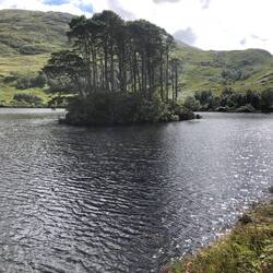 Eine kleine Insel im Loch Eilt mit BäumenRead more