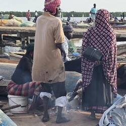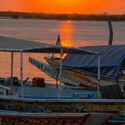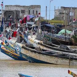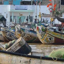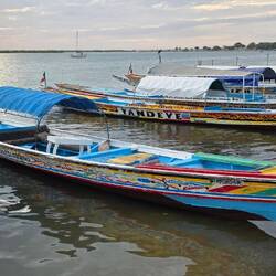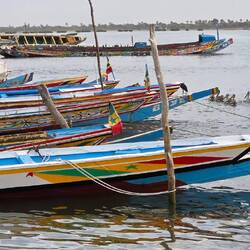From our beautiful lodge we drive to the "Ndangane Campement" a bristling little village on the Sine-Saloum Delta. Colourful women, children, boats, come and go all day long.
