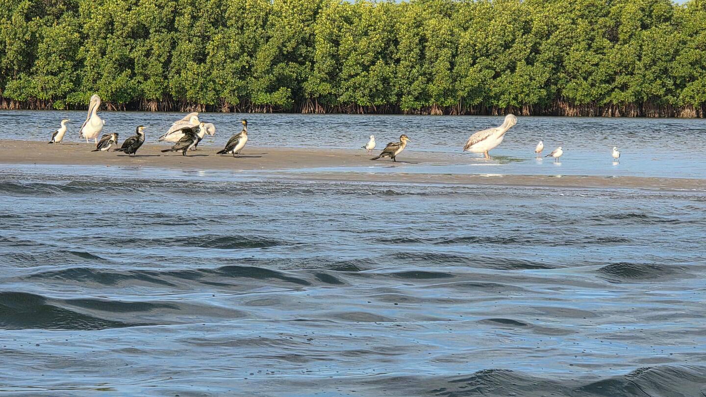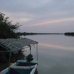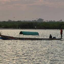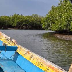 We take a boat ride into the mangroves of the delta visit the island village "Mar Lodji".