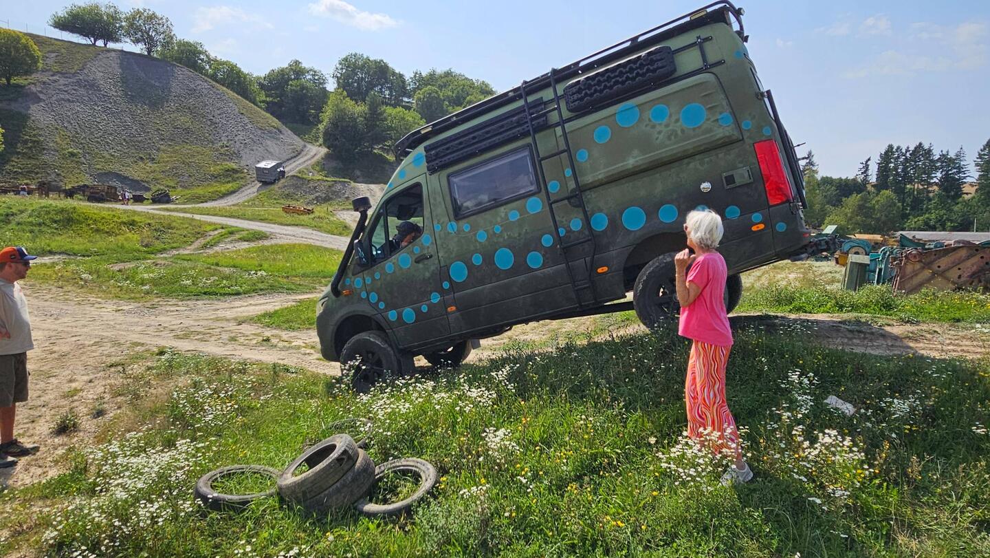 Off road driving training for Elfi and Barbara.