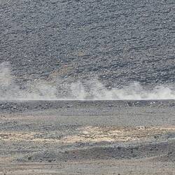 The plan was to pass by a series of large alpine lakes. But not a single one had water, only dust! No water! Not a drop!.