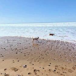 After "Sidi-Ifni" we stop-off on some incredible cliffs with the thundering Atlantic below, to spend a few beautiful days with Esperanto who is becoming more and more relaxed with us. We let him run free on the beach and play with our neighbour's dog. It is such a pleasure to watch him in his joy. He is, and will remain a beach dog♥️