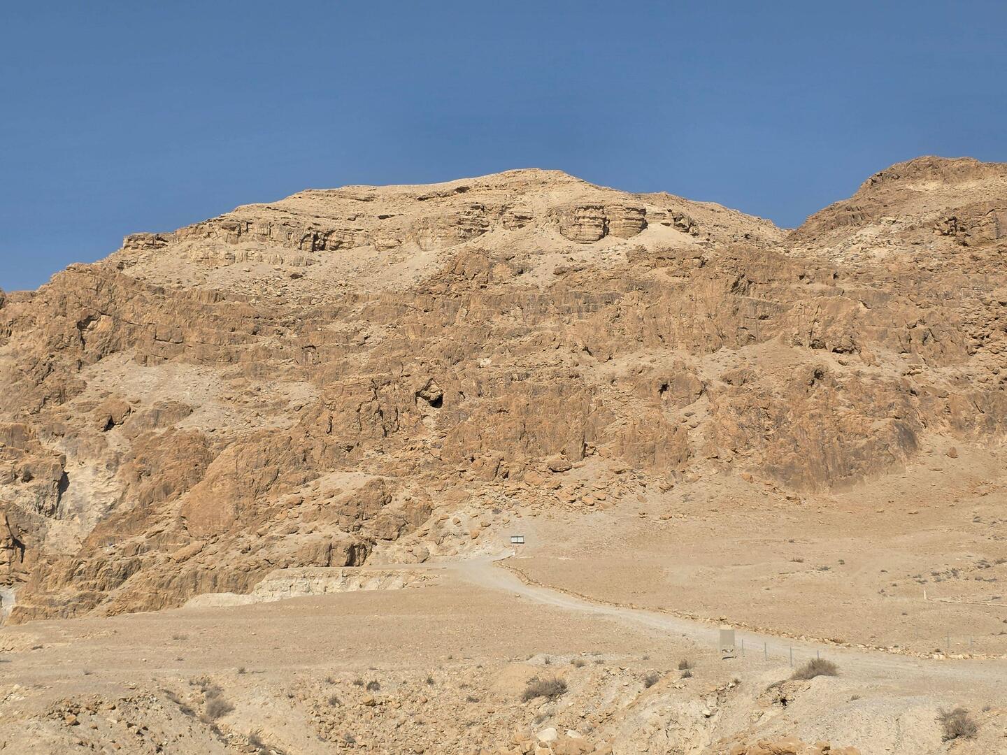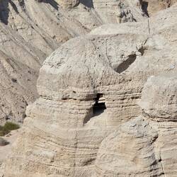 FIRST stop: At Qumran the Dead Sea Scrolls were found in 11 caves and you are looking at Cave #4 near the Dead Sea