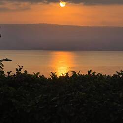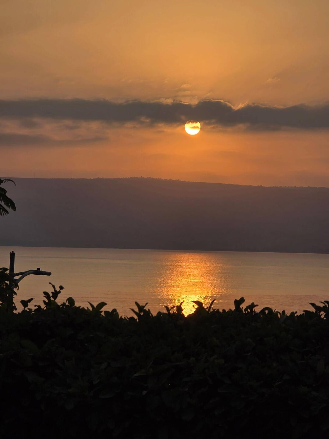 Sunrise over the sea of Galilee. On the bus heading for a boat ride on the Sea of Galilee