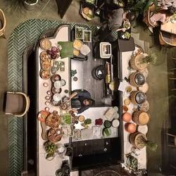 Nach dem Ringtausch beginnt nun auch unser Tisch zu essen, während auf der Bühne ein Video mit Glückwünschen und Grüßen an das Paar von Personen aus aller Welt abgespielt wird. Sogar Iryna, Jans Chefin, hat einen kurzen Clip aufgenommen.