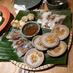 Nach dem Frühstück entspannen wir ein wenig im Hotel, bevor wir zum Mittagessen mit Nhungs Familie eingeladen sind. Die Eltern freuen sich sehr, uns wiederzusehen und fragen nach unseren bisherigen Erlebnissen, Nhung kommt kaum mit dem Übersetzen hinterher. Außer Jan, seiner Mutter, Nhung und ihren Eltern sind auch ihre beiden Schwestern und der Mann der älteren Schwester dabei. Nhung und ihre Mutter bestellen Essen für alle, sodass wir wieder die Möglichkeit haben, viele unterschiedliche Gerichte zu probieren. Für unsere Seite des Tischs werden weniger scharfe Gerichte gewählt, so gibt es den Hummer zum Beispiel mit Käsesoße statt scharfer Soße, was sehr gut schmeckt. Der Vorteil daran, dass sich alle aus der Tischmitte bedienen, ist außerdem, dass man zuerst beobachten kann, wie die Gerichte richtig gegessen werden. Zum Glück konnte ich schon vor der Reise mit Stäbchen essen, aber mit der täglichen Übung geht es auch jedes Mal besser von der Hand.