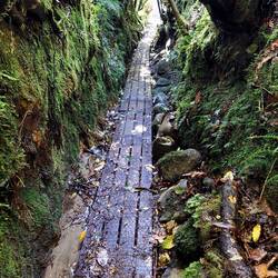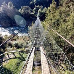 Up early this morning to walk to the cliffs to view the "storm waves." Then take Waymaker out to Tauranga Bay to view the seal colony and the weka's. Then into Westport to exchange clothing, visit Mitre 10, visit a dump station, full up with gas Then head out of town up the Lower and Upper Buller Gorge. We stopped to cross the longest swing bridge in NZ and take the walk to view where the land rose 4.5mtr during the Murchison earthquake.
