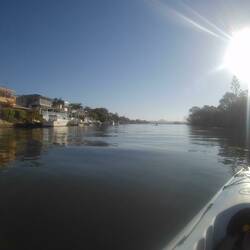 Nach einem Walk am Main Beach und einem Sandwich in der Stadt liehen wir uns dann zwei Kayaks bei U Drive für zwei Stunden aus und fuhren damit über den den Fluss und einen Rundkurs durch ein sichtbar wohlhabenes Viertel, in dem jedes der Luxushäuser einen direkten Zugang zum Wasser mit Bootsanleger hatte.