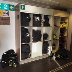 Wir hatten Sicherheitseinweisung und haben die Kabine eingerichtet und das Schiff kennengelernt.