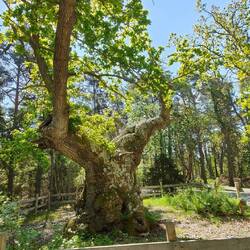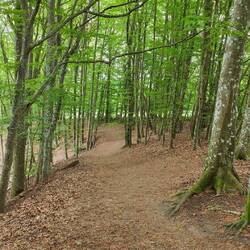 Zu Fuss erkunden wir den Wald mit den vielen alten Bäumen.