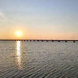 Über die Brücke zurück auf das Festland.,entlang der Küste.