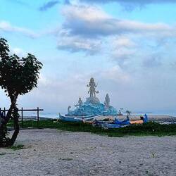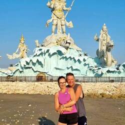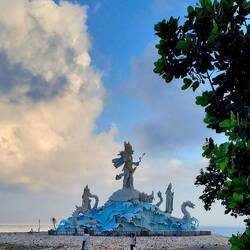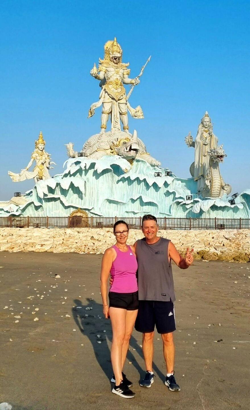 Went for another early morning walk up the street and along beach stopping at the new statue for some pics.