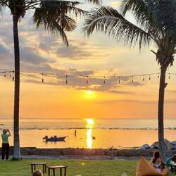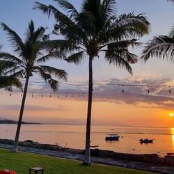 I woke early to see the Full Moon over the bay. The Red sunrise over the other side of the Resort was a complete bonus. Photos don’t do it justice.