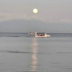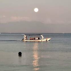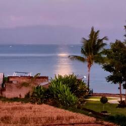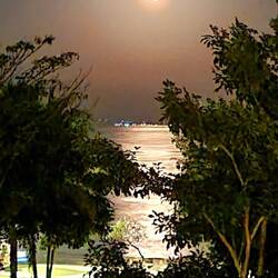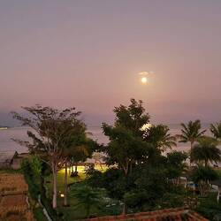Woke to a brilliant full moon over the bay from our balcony.