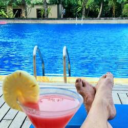 Woke late and went for breakfast then up to Nuka’s for coffee then back to Risata to sit by the pool.