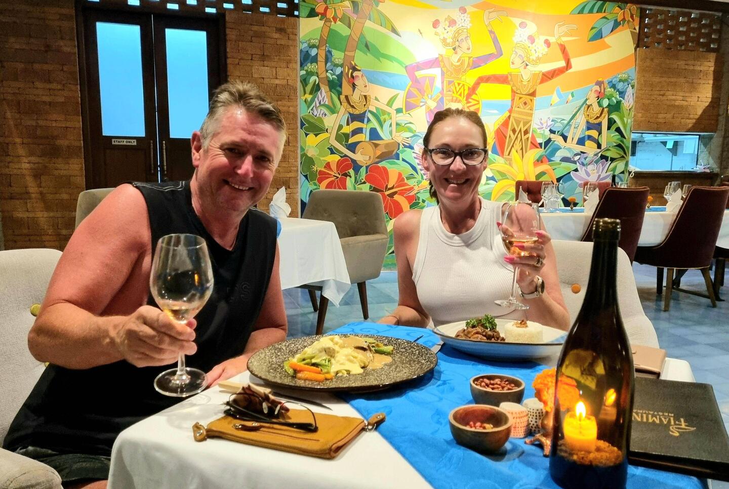 We had pre dinner drinks watching the sunset at Sagara, then walked to Vincent's restaurant for an amazing meal in a restaurant with fantastic staff.