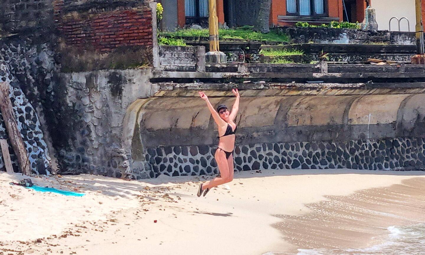 Jenny found a secluded little spot on the beach in front of Pandan Restaurant.