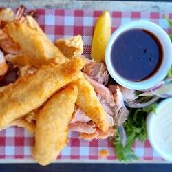 We took a late morning walked around to Rainbow Bay and had lunch at Rainbow Bay SLSC. Jenny hated her Thai Chicken Salad, my Flathead was OK.
