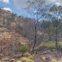 It was 39° just after midday today. Did I say this is tough country? The rain cloud that we spotted from the lookout sprayed a few desultory drops at us, but it did bring the temp down to 31° for a while before rising to 34° for the afternoon.