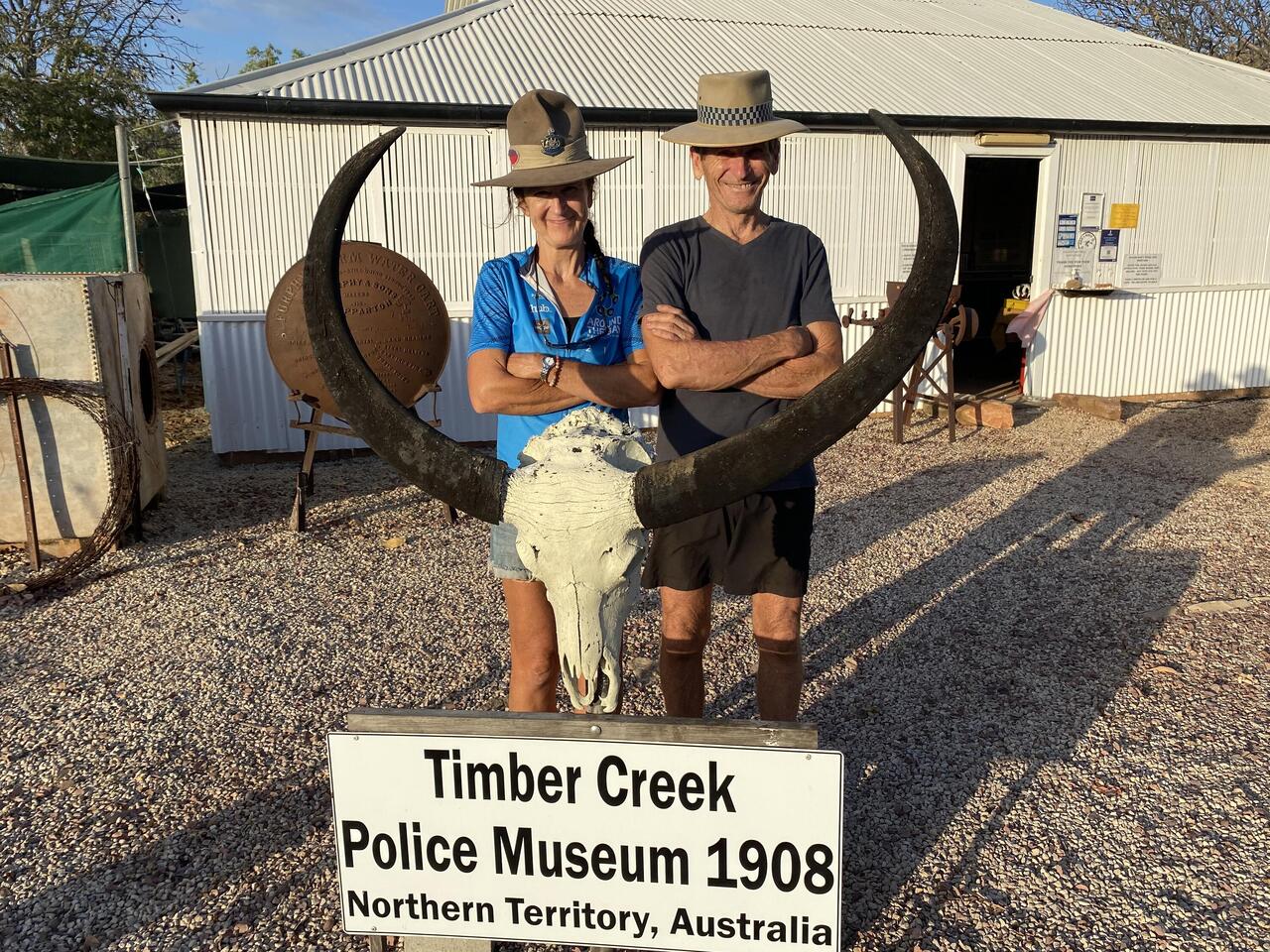 A quick stop at the Timber Creek Police Museum on the way out of town this morning. The photo has us smiling but the invasion storiesLæs mere