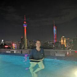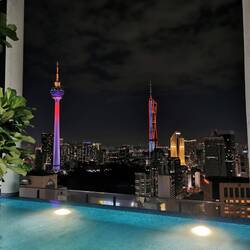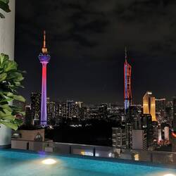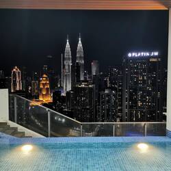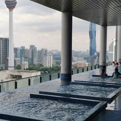 Wir sind nach einem sehr komfortabelen Flug in Kuala Lumpur angekommen und residieren im 28. Stockwerk samt Infiniti Pool mit Blick auf die Skyline.