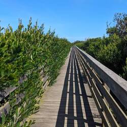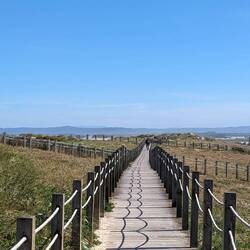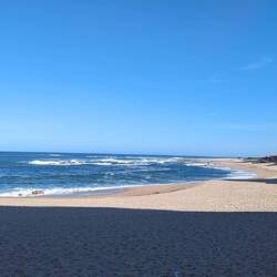 Similar to life, the Camino took us on a variety of paths today. We began on the boardwalks along the ocean accompanied by the wind that we have become accustomed to. The ocean boardwalks meanered into an agricultural region with a variety of trees and vegetation bordering the way. Following this, we found ourselves in small villages on cobblestone pathways that became cement sidewalks for a while. After this, we traisped on dirt pathways. At one point, we had to cross an extremely questionable bridge with half of it tarped off for sandblasting. Unfortunately the tarp didn't prevent the sand from entering our mouths, eyes and polishing our exposed skin. The final part of our walk, (when we inadvertently came off the Camino way) we found ourselves on the side of a very busy highway. After a very long day of walking over 20 km, we were extremely happy to arrive at our albergue, Hostel Costa Selvagem in Marinhas. Unfortunately, my bag (that I had shipped from our previous accommodation) didn't make it to the hostel. A night without my bag helped reinforce one of the many lessons learned on the Camino - minimizing can be done, even if only for you one night😁. One of the many highlights today was a real cup of tea, in a teapot at a local cafe. Tea is not easy to find here as they enjoy their coffee.Leer más