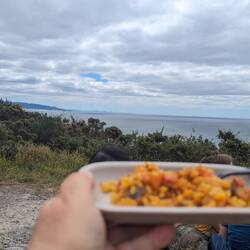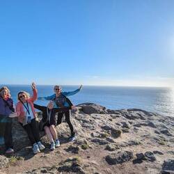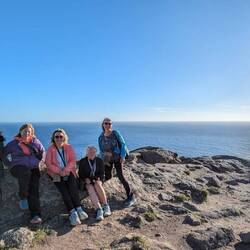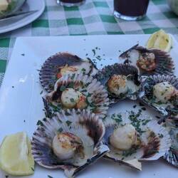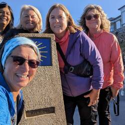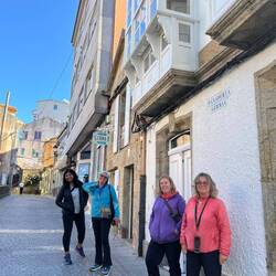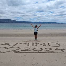 Today is a short walk about 14 km to Finisterre. We took our time getting started enjoying the luxury of time and cooler temperatures. Kamla and I did get a little lost for a few minutes but we're thankful for it because we were on the boardwalk beside the ocean for a few minutes. Then we began walking through the narrow streets of Cee before becoming a magical forest path. There was a big hill which I wasn't happy about but I reminded myself how fortunate I am to have this opportunity. As I entered the Hamlet of Estorde a picturesque beach came into sight. I spent some time sitting on the beach enjoying the sound of the gentle waves lapping the shore, admiring the incredible beauty of the colours of the water while the sun warmed everything around me. As I approached the road, I heard someone call my name, it was Kamla so we enjoyed a coffee together sitting in the most beautiful setting at a cafe on the beach. We reluctantly left the magical setting and continued on our way. We meandered through the forest paths chatting and soaking up the beauty that was all around us. As we departed the forest, the trail took us down to a pristine beach. It was at this point, we encountered a young man who had just finished a Camino and was paying it forward by preparing and sharing a delicious paella. Kamla and I gratefully accepted his offer and joined three young people from Utah finding a rock to sit on to relish this scrumptious dish. It really was a magical Camino moment. The rest of our walk was along the stunning beach with the waves gently lapping towards us. We arrived in Finisterre and found our friends who had already arrived at our destination. We went for dinner and then another long walk (about 7 km) return trip to the famous lighthouse. This is active lighthouse is one of the most powerful in all of Europe and it was believed to be the most westernpoint point of land. We were all exhausted when we returned after enjoying another fantastic day on the Camino.Read more