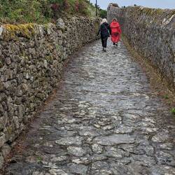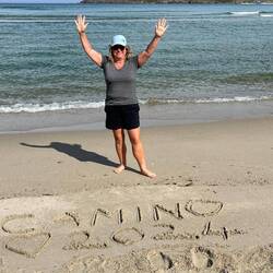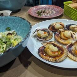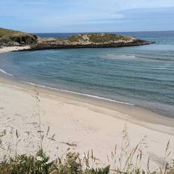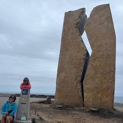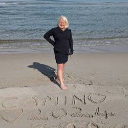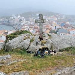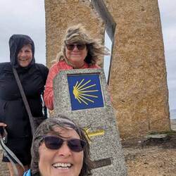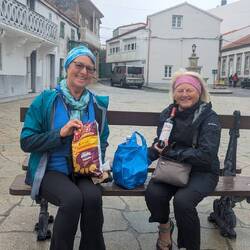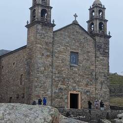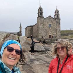 It was a good feeling waking up and knowing I didn't have to walk today. While it's been an incredible journey and I have seen many spectacular sights and wonderful encounters, I am thankful to be done. Lorelee and I began our day with some beach time at Praia Lires. We had the entire beach to ourselves and it was so peaceful to rest there, listening to the gentle waves as the soft sea breeze whispered while we watched sail boats on the horizon. It was difficult to leave the tranquility of this place, but eventually we made our way back to the hamlet to catch a taxi to Lires. Our taxi driver was very friendly and pointed out a lot of landmarks along the way. Unbeknownst to us, Mary had just arrived at our albergue and greeted us in the lobby when we arrived, perfect timing! The three of us set off for lunch. We took advantage of some of the local traditional dishes and shared Padron peppers, scallops and salad followed by dessert. A brief exploration of the town followed that was shortened because it started raining. After 3 weeks of walking, this is our first experience with any amount of rain, and for that I am very thankful. It was a very dreary afternoon in Muxia, but I did manage to drag myself out to join Lorelee and Mary exploring the town. We had fun taking photos on the rocks and managed to stay standing despite the extremely strong winds. We have a lovely large room that is spacious even with the three beds, a couch, desk, a table and chairs and we have a view of the sea. A perfect space to stay cozy and get a good nights sleep.Read more