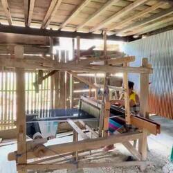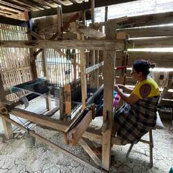 Pünktlich um 9 Uhr fuhren wir los nach Tana Toraja und kamen nach ca 6 Stunden reiner Autofahrt an. Noch in Sengkang fuhren wir spontan in die Strasse mit den Webereien und fanden tatsächlich jemanden, der uns zeigte, wie man Sarongs webt. Die Weberin fragte Helen, ob sie auch mal probieren wollte und da kam natürlich ganz klar ein Ja. Als Dank kauften wir dann einen Sarong, 4 Meter chinesische Seide, für umgerechnet gerade mal unglaubliche CHF 10. War dies das Geschäft des Tages? Ikhsan meinte, eher das Geschäft der Woche.