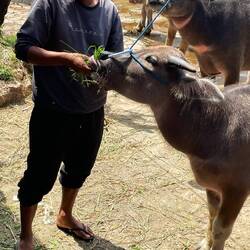 Die Büffel werden oft als Jungtiere gekauft und dann jahrelang gefüttert und sehr gut behandelt. Tatsächlich sind die Büffel fast heilig und werden von den Familien wirklich gut versorgt mit viel gesundem Fressen und täglicher Wäsche.