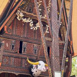 Tana Toraja ist bekannt für seine aufwendigen und teilweise blutigen Beerdigungszeremonien, bei denen Büffel und Schweine als Opfer geschlachtet werden, um den Verstorbenen eine gute Reise ins Jenseits zu ermöglichen.