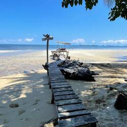 Der Fahrer fragte uns, wo wir denn gerne Mittag essen würden und wir sagten, Restaurant mit Ausblick. So brachte er uns zum Restaurant Ombak mit einer Terrasse direkt am Meer. Herrlich die leichte Briese. Wir hatten frittierten Fisch und gebratenen Reis.