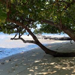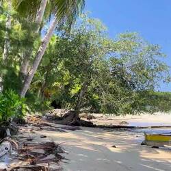 Wir hörten lautes Wellenrauschen und konnten erahnen, dass sich das Meer gleich angrenzend an den Regenwald befand. Da wir für die Tarantel noch zu früh dran waren, gingen wir für eine kurze Pause noch zum Strand. Der Strand hatte schwarzen Sand, welchem den Vulkanaktivitäten in dieser Gegend zu verdanken ist.