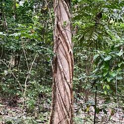 Nun konnten wir starten. Es war zuerst ein gut begehbarer Weg, welcher später auf den Dschungelboden mit Wurzeln wechselte. Obwohl einfach zu gehen, war es bei 30 Grad und hoher Luftfeuchtigkeit eine schweisstreibende Angelegenheit. Wir erfreuten uns auch schon sehr an den riesigen, hohen Bäumen, z.B. Ficus variegata, mit seinem faszinierenden Wurzelwerk. Schon fast ein Kunstwerk.