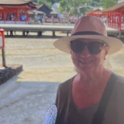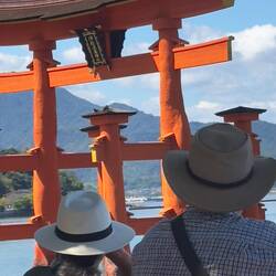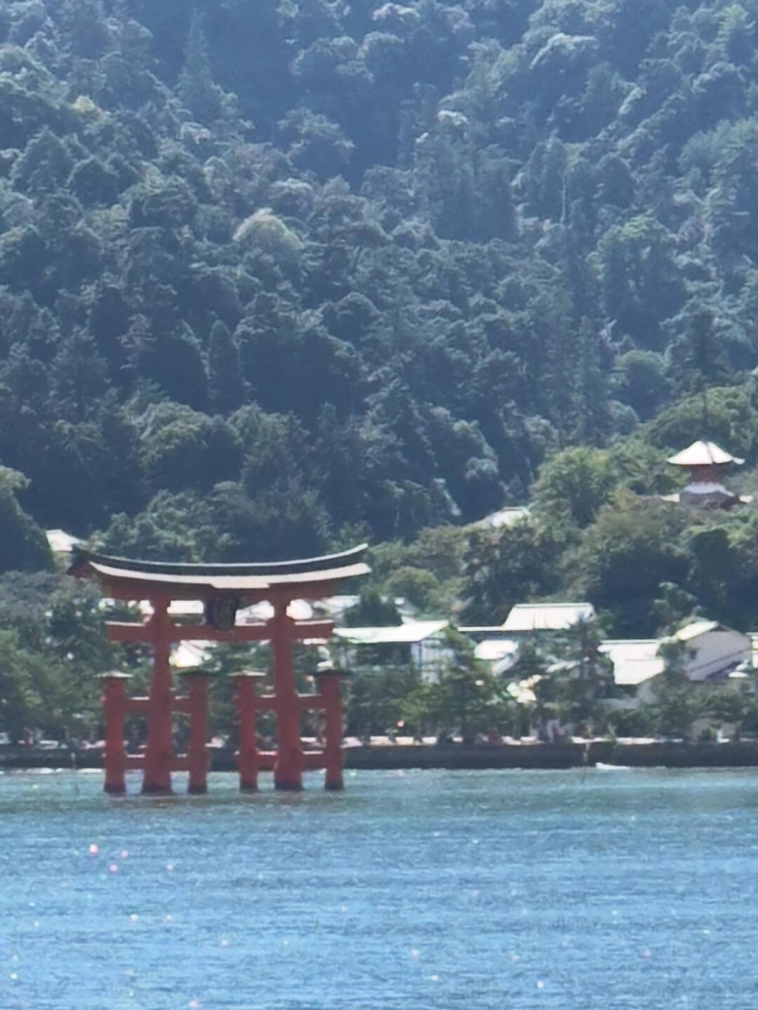 For our only other full day in Hiroshima we chose to go to the sacred island of Miyajima. This involved a short train trip ( about 9 stops, ending at Miyajimaguchi Station) and a beautiful ferry ride,Baca lagi